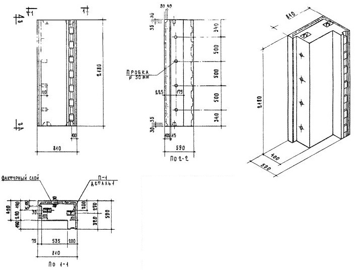 Стеновые легкобетонные блоки толщиной 40 см по Серии 1.133-1.